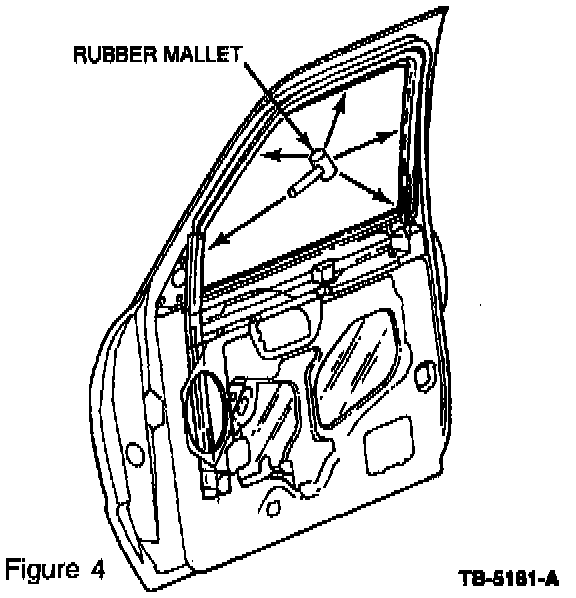7. Once all the corners are fully seated, seat the rest of the glass run onto the door flange using a rubber mallet (Figure 4).