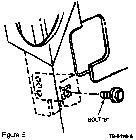 b. Hand start the previously removed bolt (B) to the revised glass run assembly.