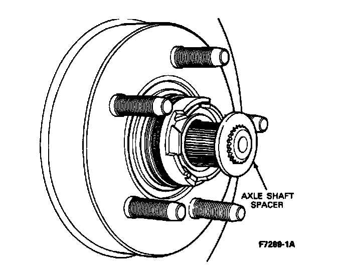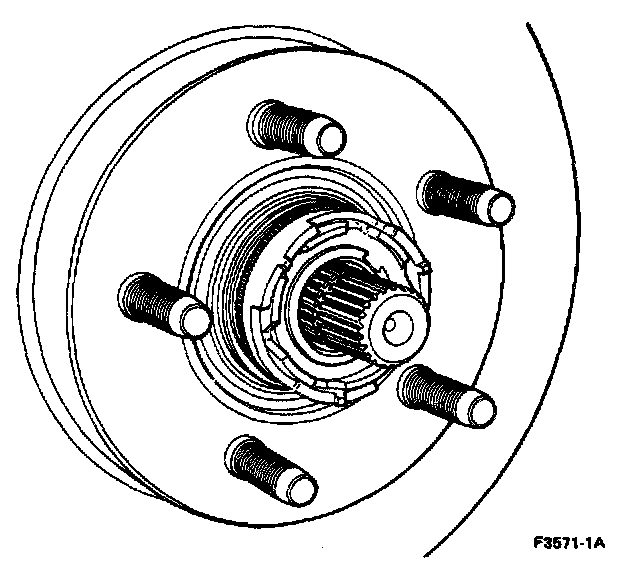 3. Remove the retainer washers from the lugnut studs. Remove the automatic locking hub assembly from the spindle.