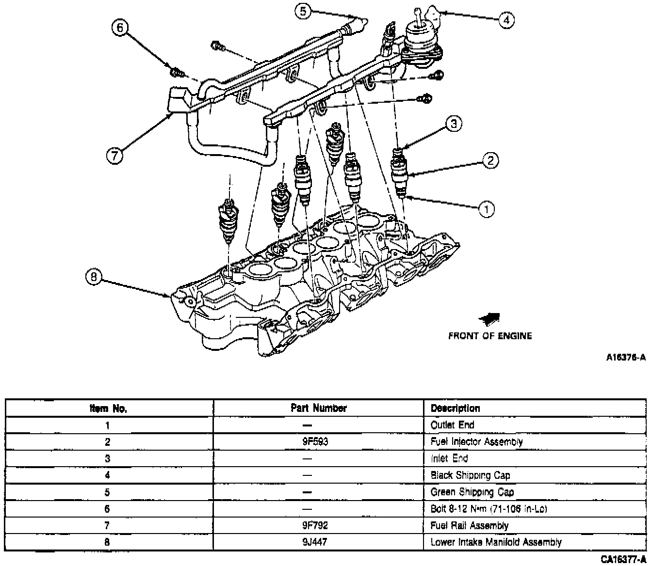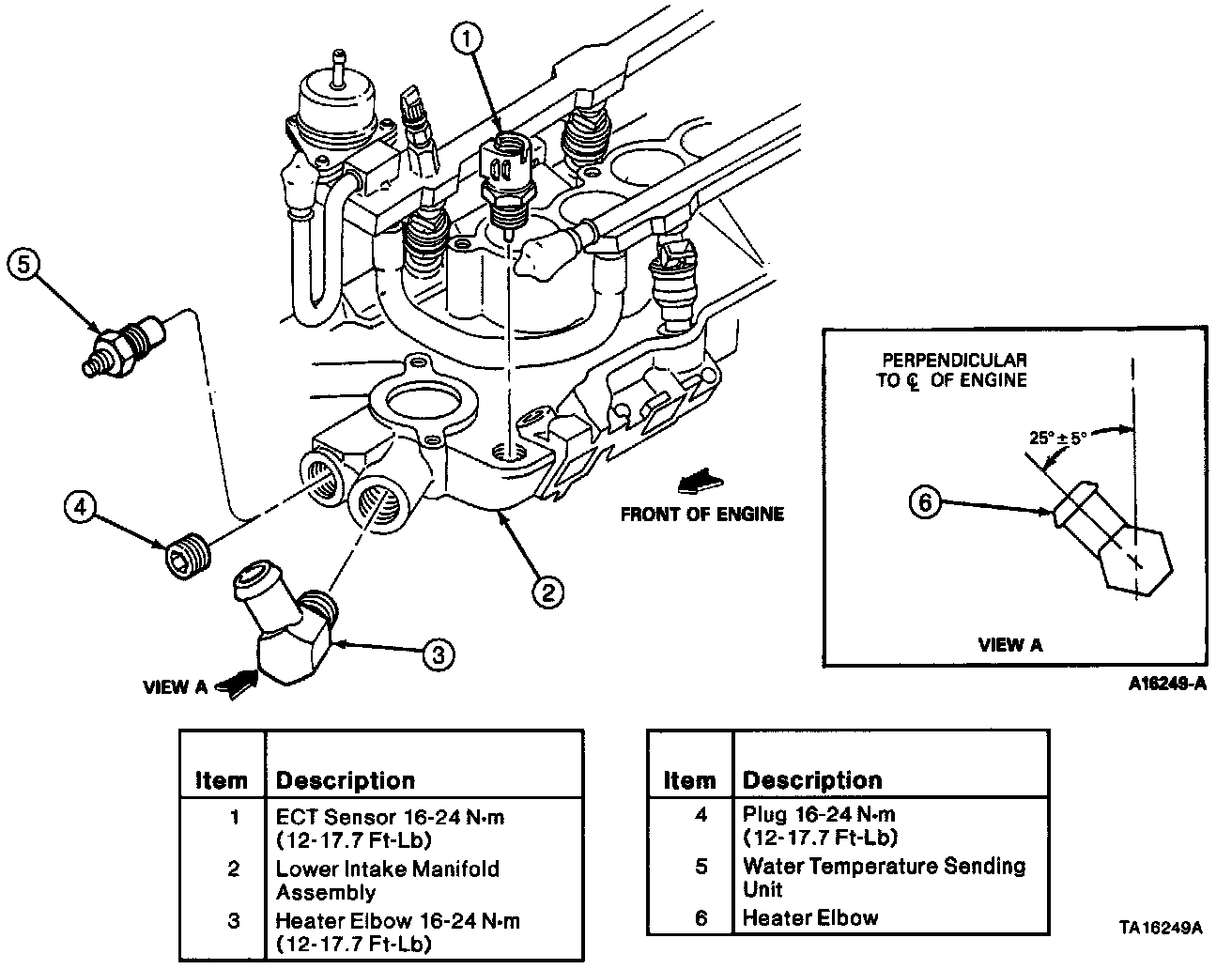 2. If installing a new intake manifold, transfer fuel injectors, fuel supply manifold, ECT sensor, thermostat, gasket and housing, heater hose elbow and coolant temperature sending unit to new manifold.