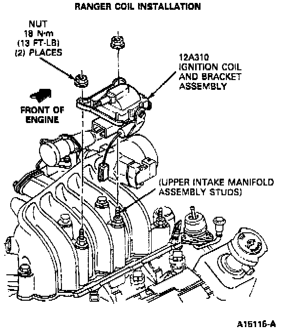 13. Install throttle body assembly and new gasket. Install ignition control module. Tighten retaining nuts to 18 Nm (13 ft lb).