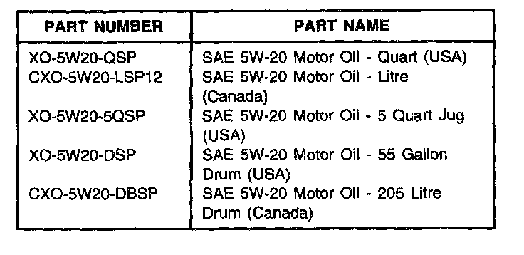 All 2001-2002 vehicles other than those listed in the "Exception 2001 Vehicles" or "Exception 2002 Vehicles" chart are being filled with SAE 5W-20 motor oil at the factory and should also be serviced with SAE 5W-20 oil.