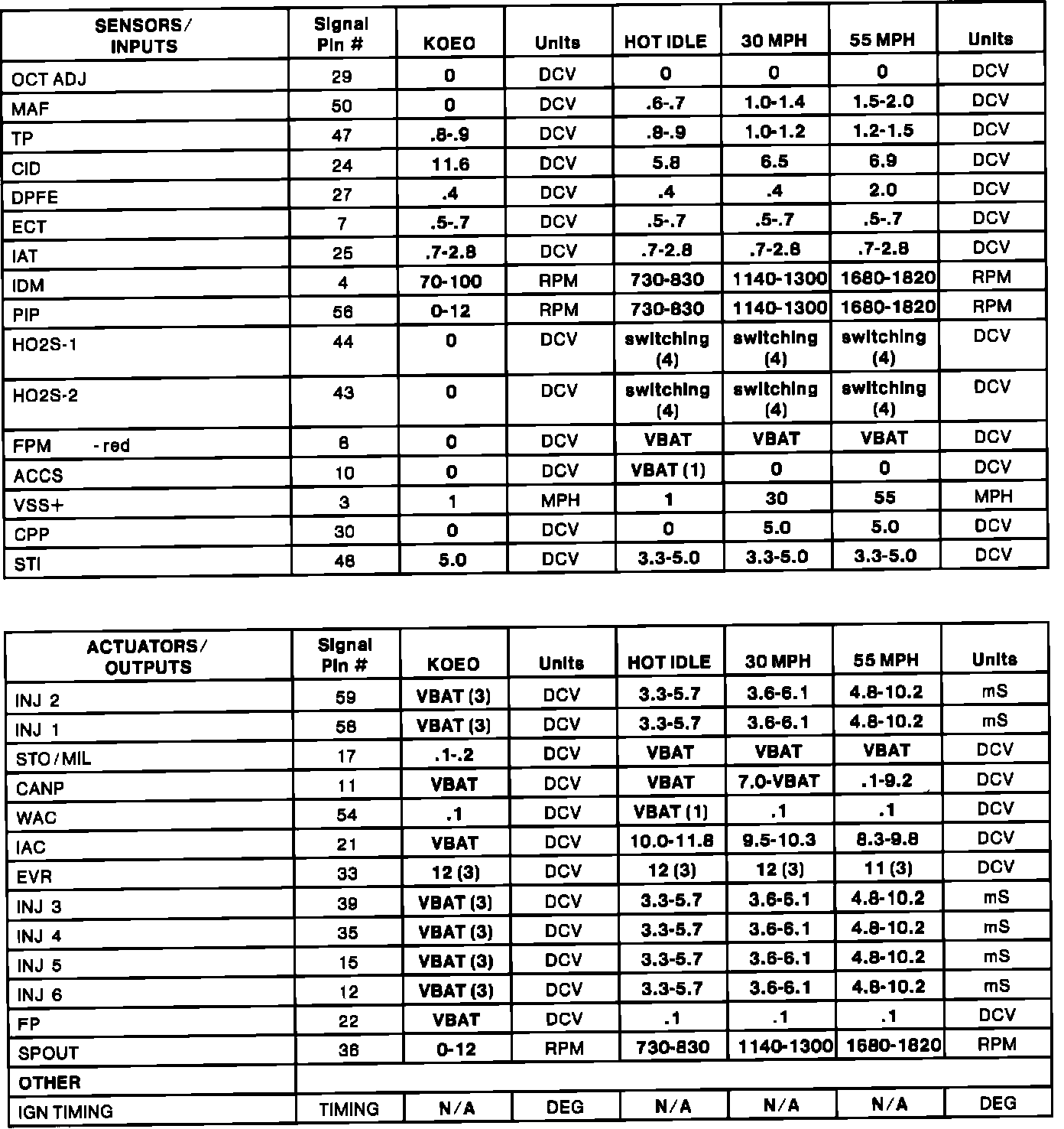 - Place the transmission in "D" or "OD" for the 30 mph and 55 mph values.