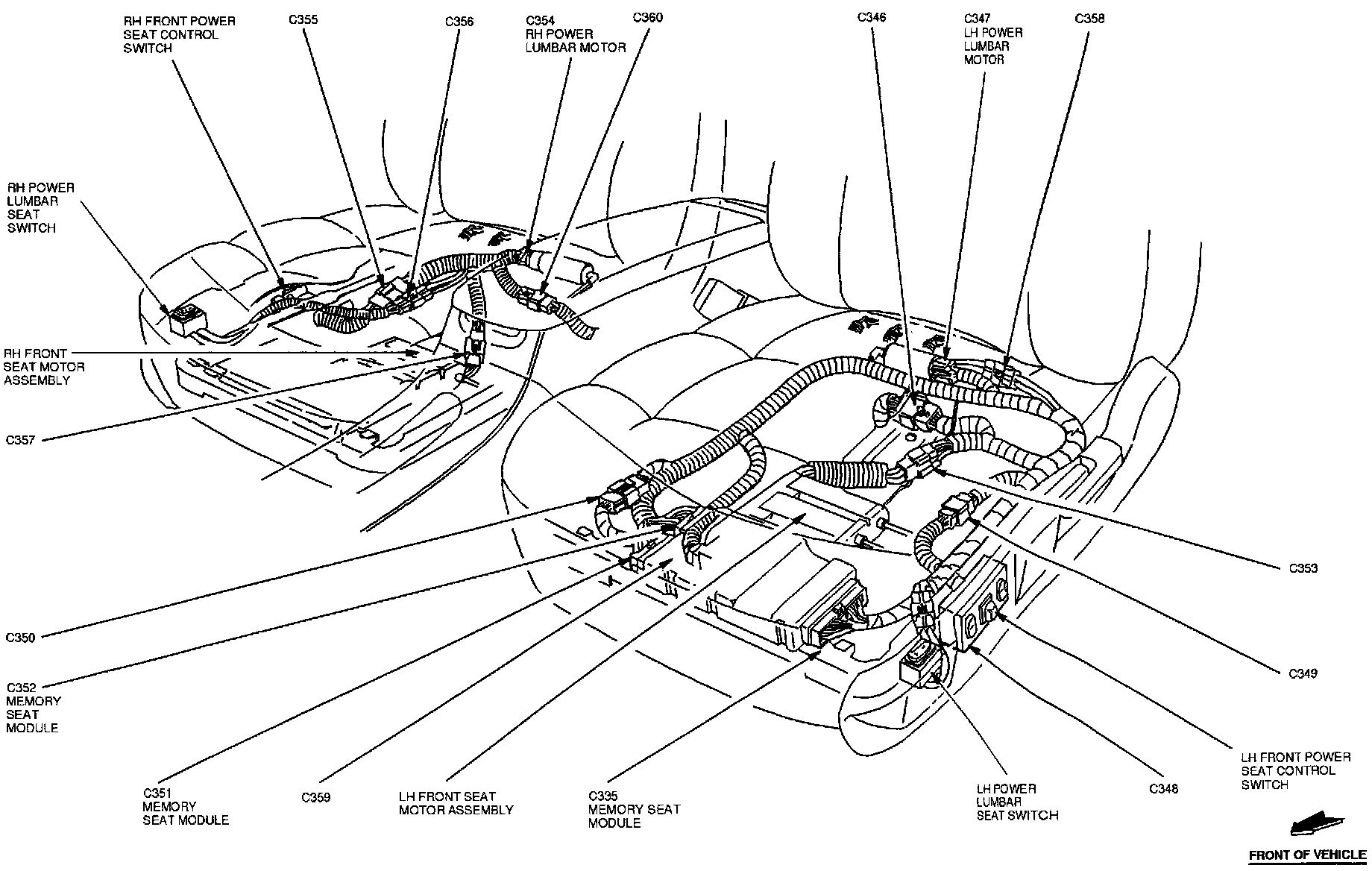 The Memory Seat Module is located below LH front seat.