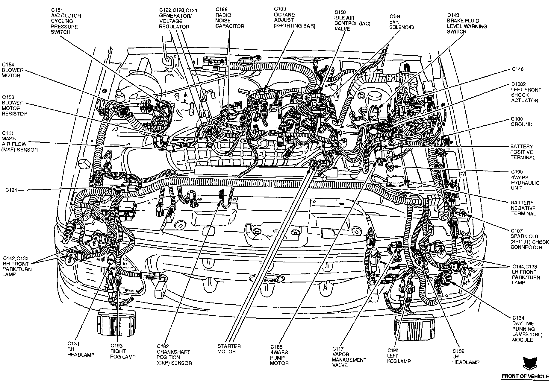 The Mass Air Flow Sensor is located at the RH rear corner of the engine compartment.