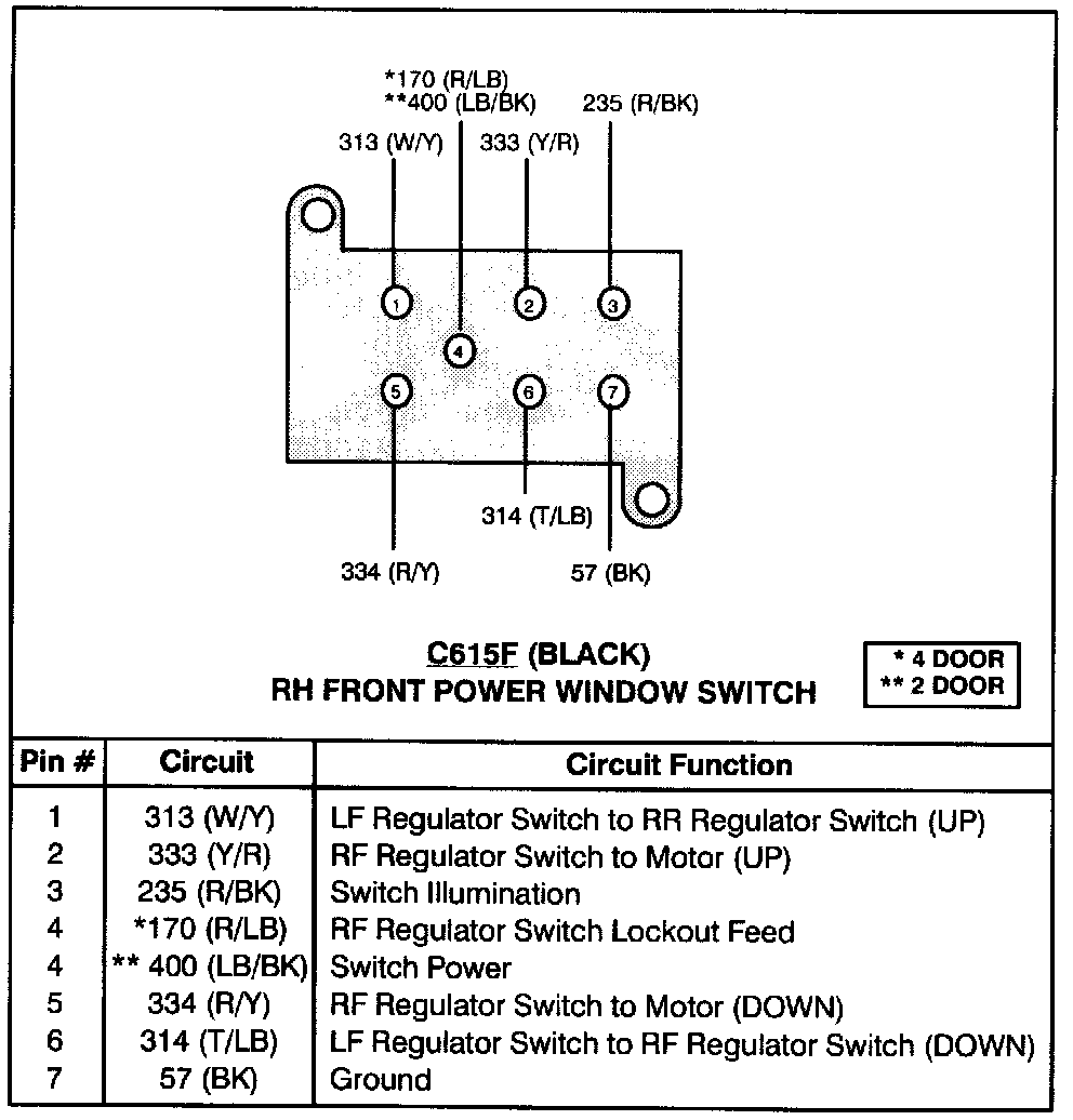 RH Front Power Window Switch: