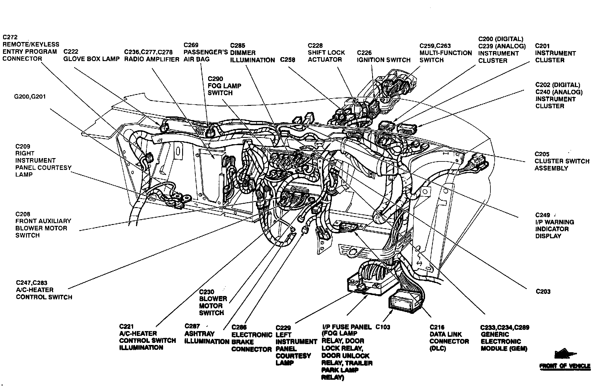 The Data Link Connector is located below instrument panel, right of steering column.