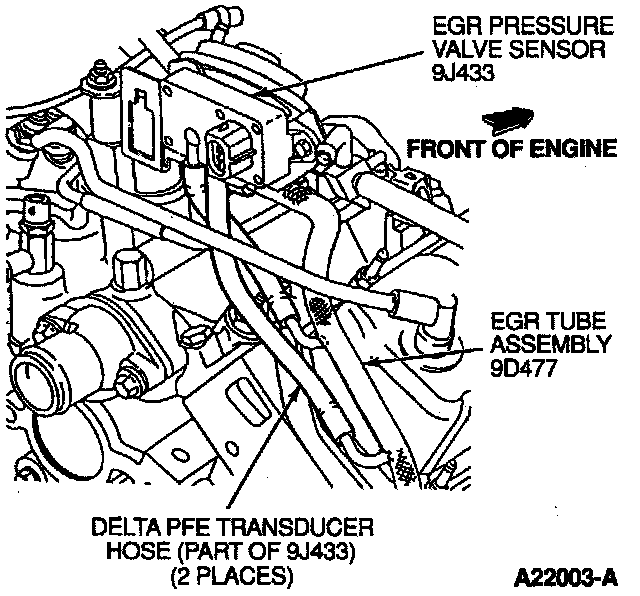 ^ Disconnect EGR pressure valve sensor hoses and engine control sensor wiring from EGR pressure sensor. Remove EGR pressure sensor from bracket.