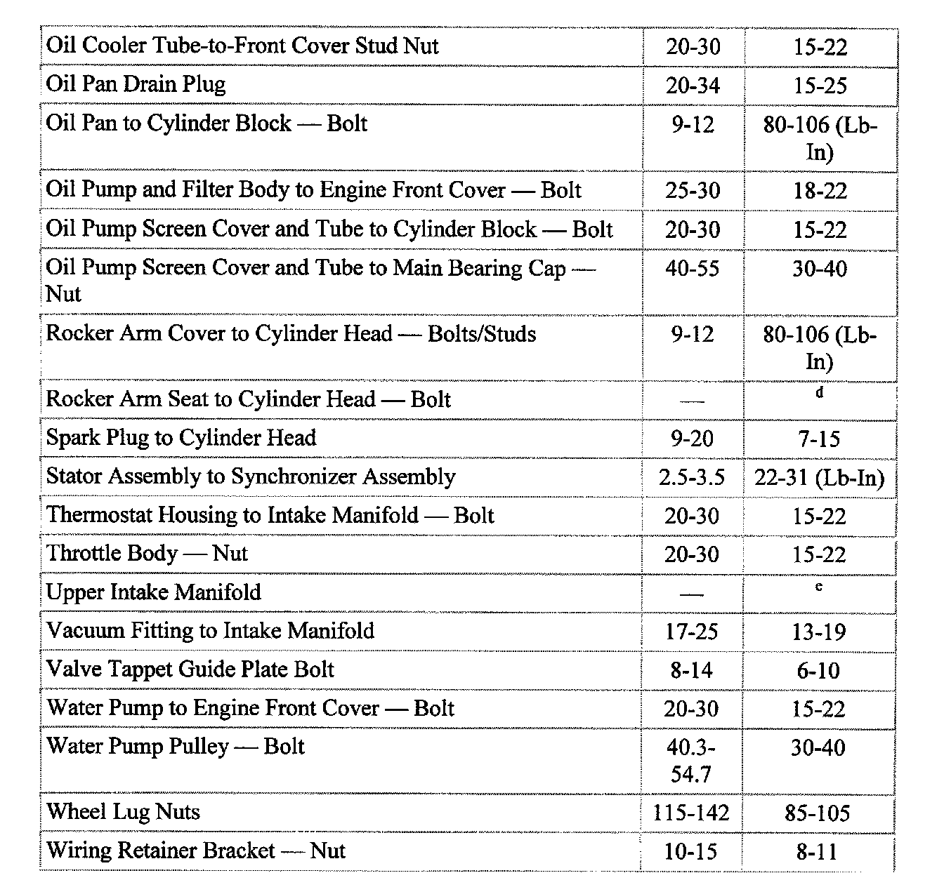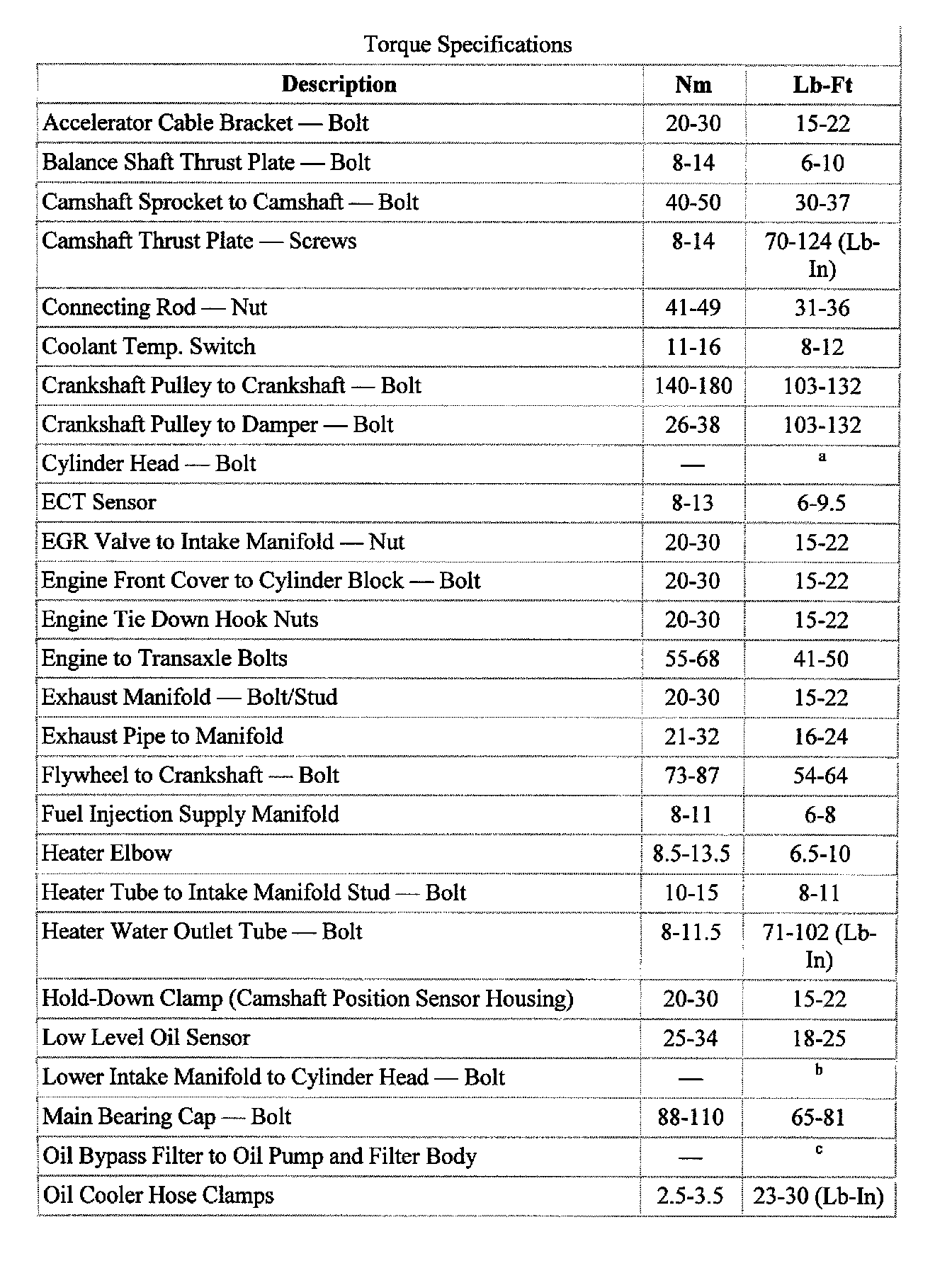 Torque Specifications