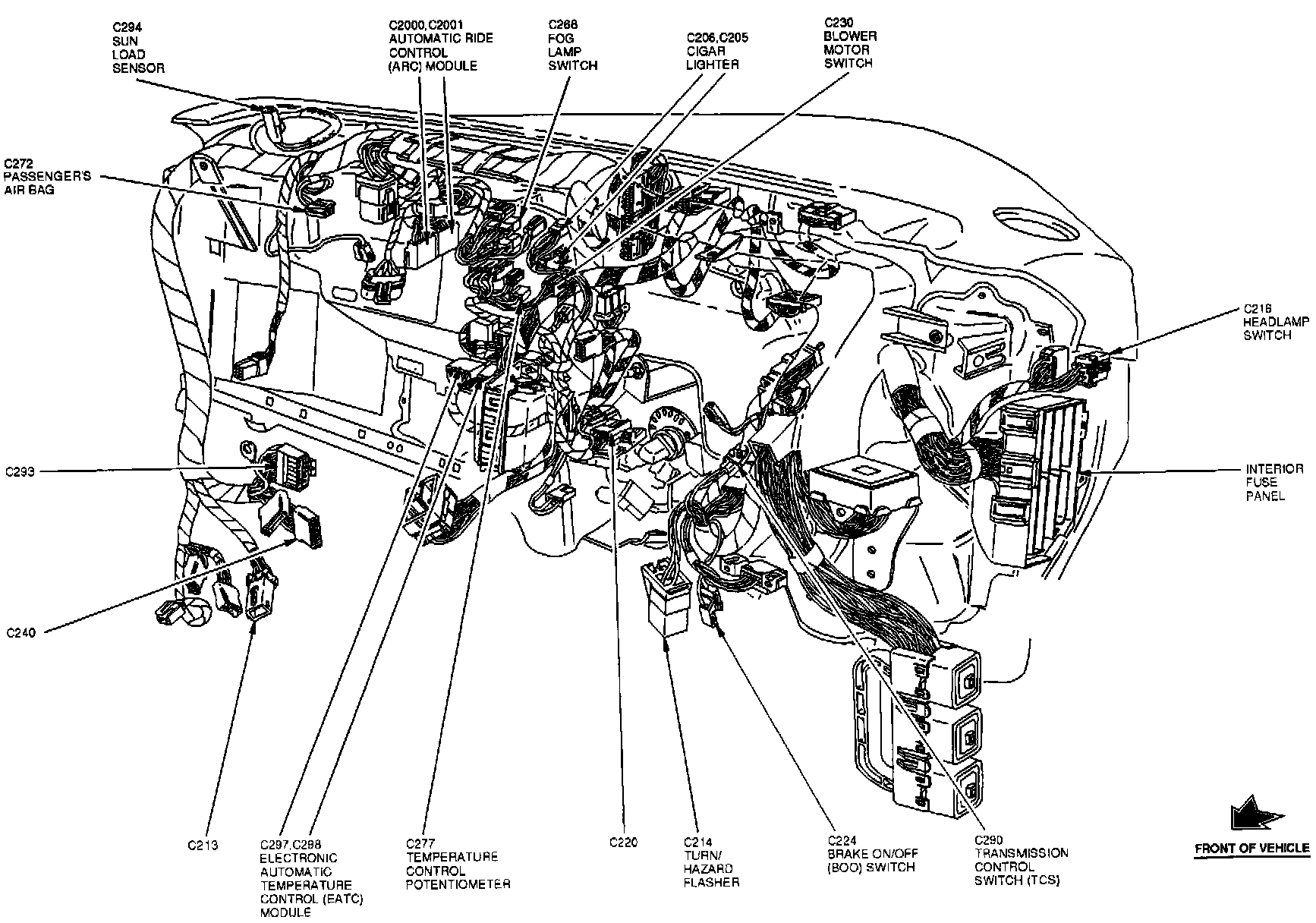 The Electronic Automatic Temperature Control Module is located at the center of the instrument panel.