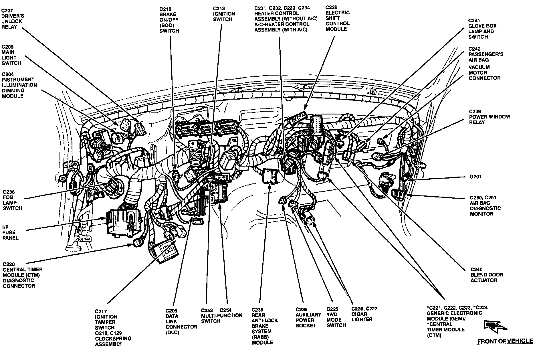 The Data Link Connector is fastened to the bottom of the instrument panel, right of steering column.