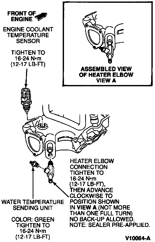 5. To install, reverse Removal procedure. Tighten ECT sensor to 16-24 Nm (12-17 lb ft). Refill engine cooling system.