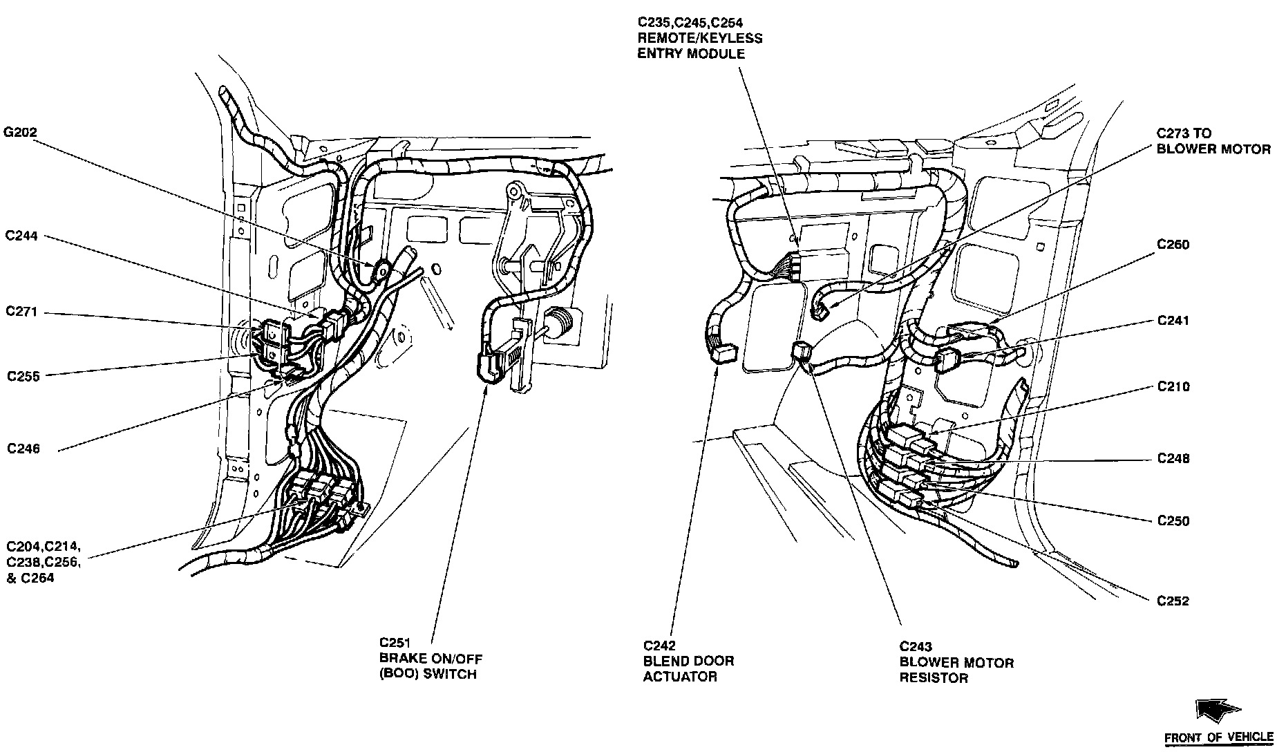 The Remote/Keyless Entry Module is located behind RH side of instrument panel.