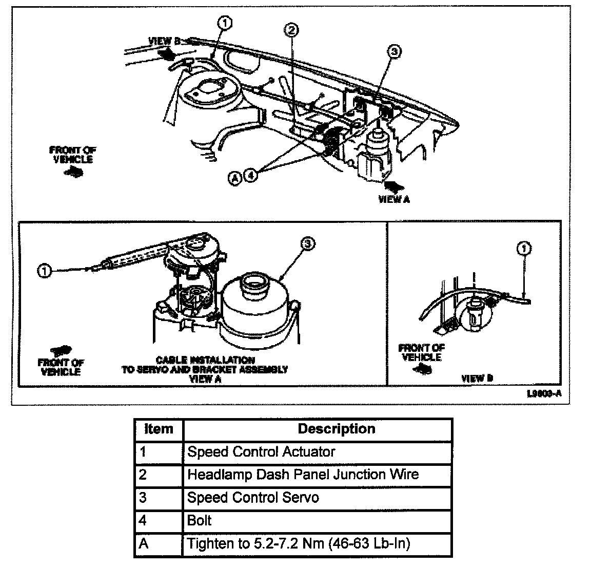 - under increased brake pedal efforts (22-44 Nm [5-10 lbs] engine running), the deactivator switch will open and remove power to the speed control servo, releasing the throttle from servo control.