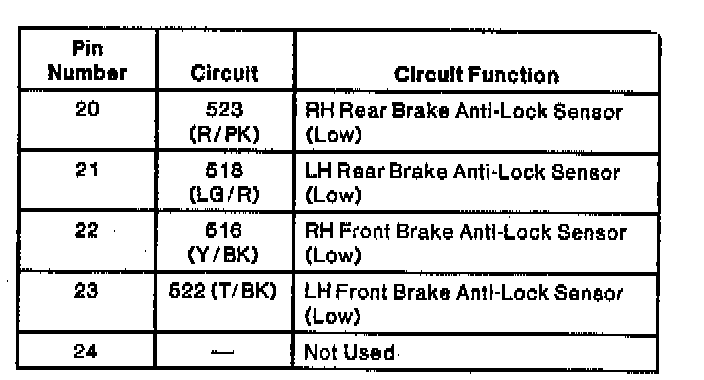 Anti-Lock Brake Control Module Connector (Part 2 Of 2):