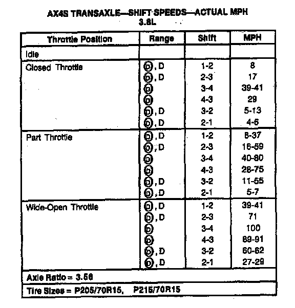AX4S 4-spd A/T, Shift Speeds (3.8L Windstar):