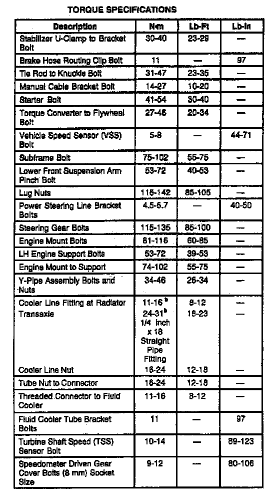 AX4S 4-spd A/T, Transaxle Torque (Windstar):