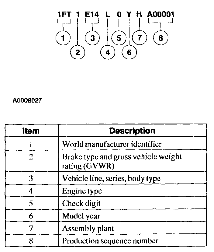 Positions 5 through 7 indicate vehicle line, series and body type.