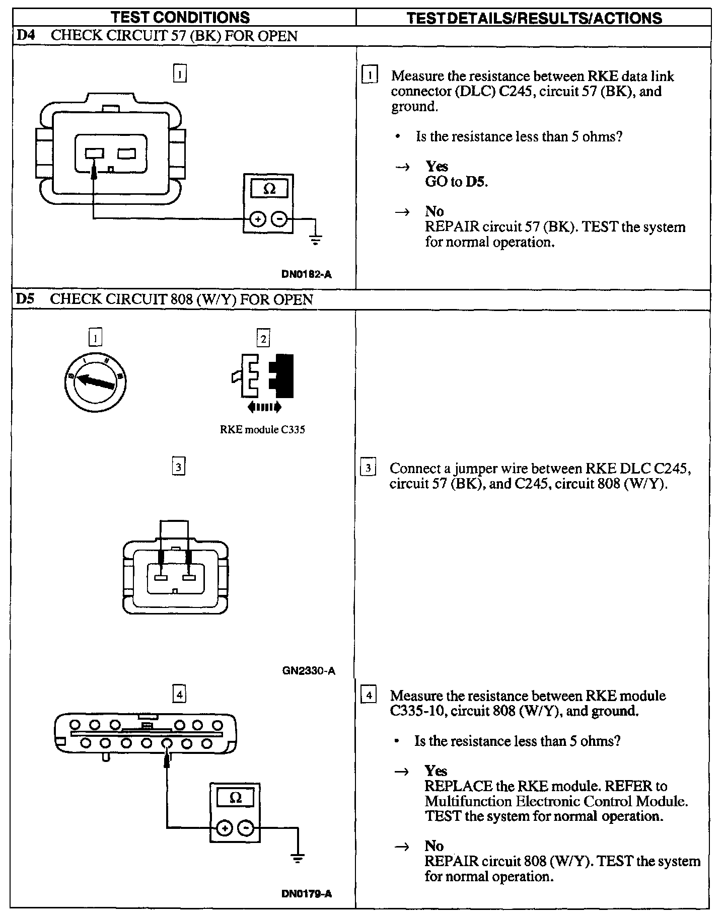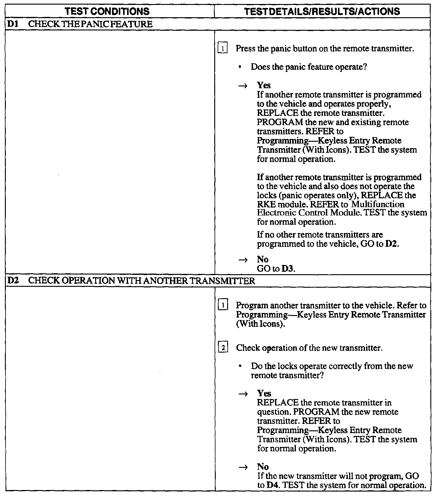 Test D: Doors Do Not Lock/Unlock Using the Remote Transmitter