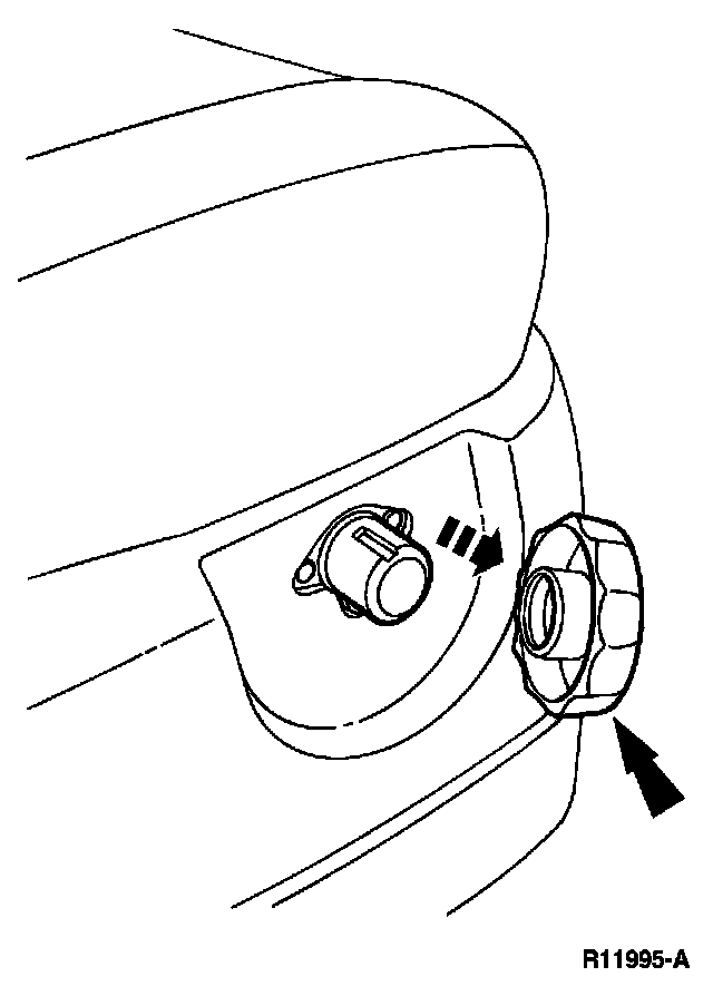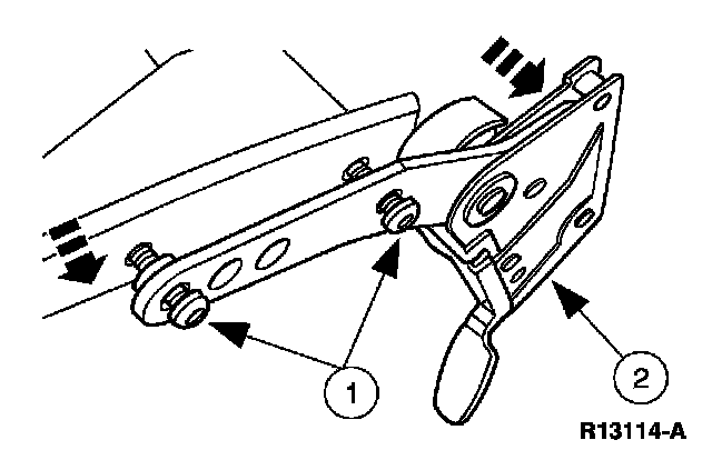 1 Pull the front seat back pivot side inner cover inboard to clear the belt and buckle assembly pretensioner.