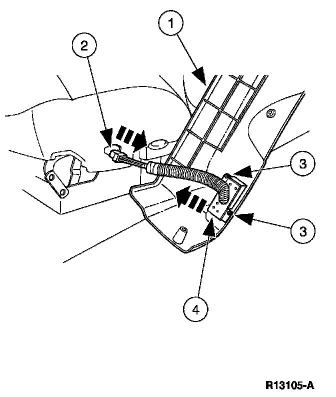 26. Install the rear pin-type retainer to the upper seat track mounting flange.