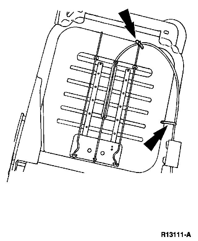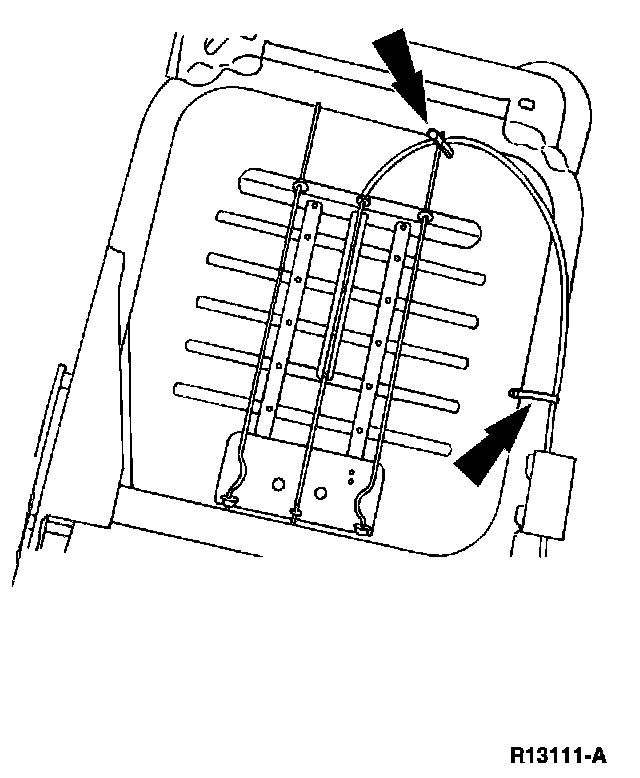 14. Install wire ties fastening the front seat back pad adjuster cable to the front seat back frame.