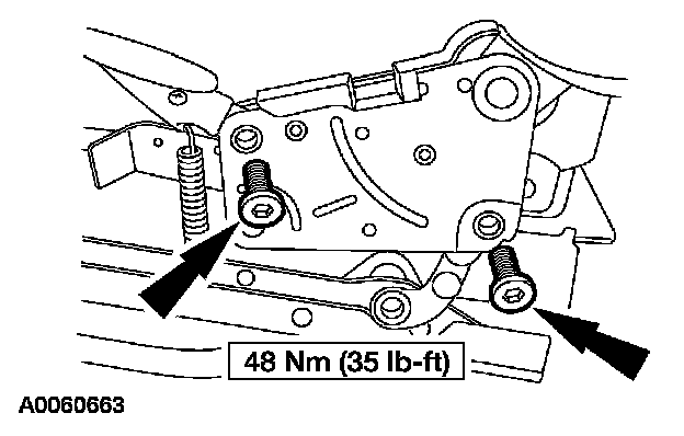Install the two front seat track nuts retaining the seat tracks to the seat cushion.