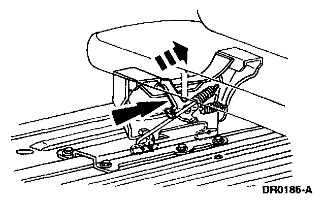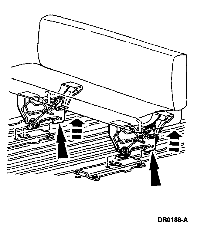 4. Lift the right and left latch rod hook ends from the seat latch striker.
