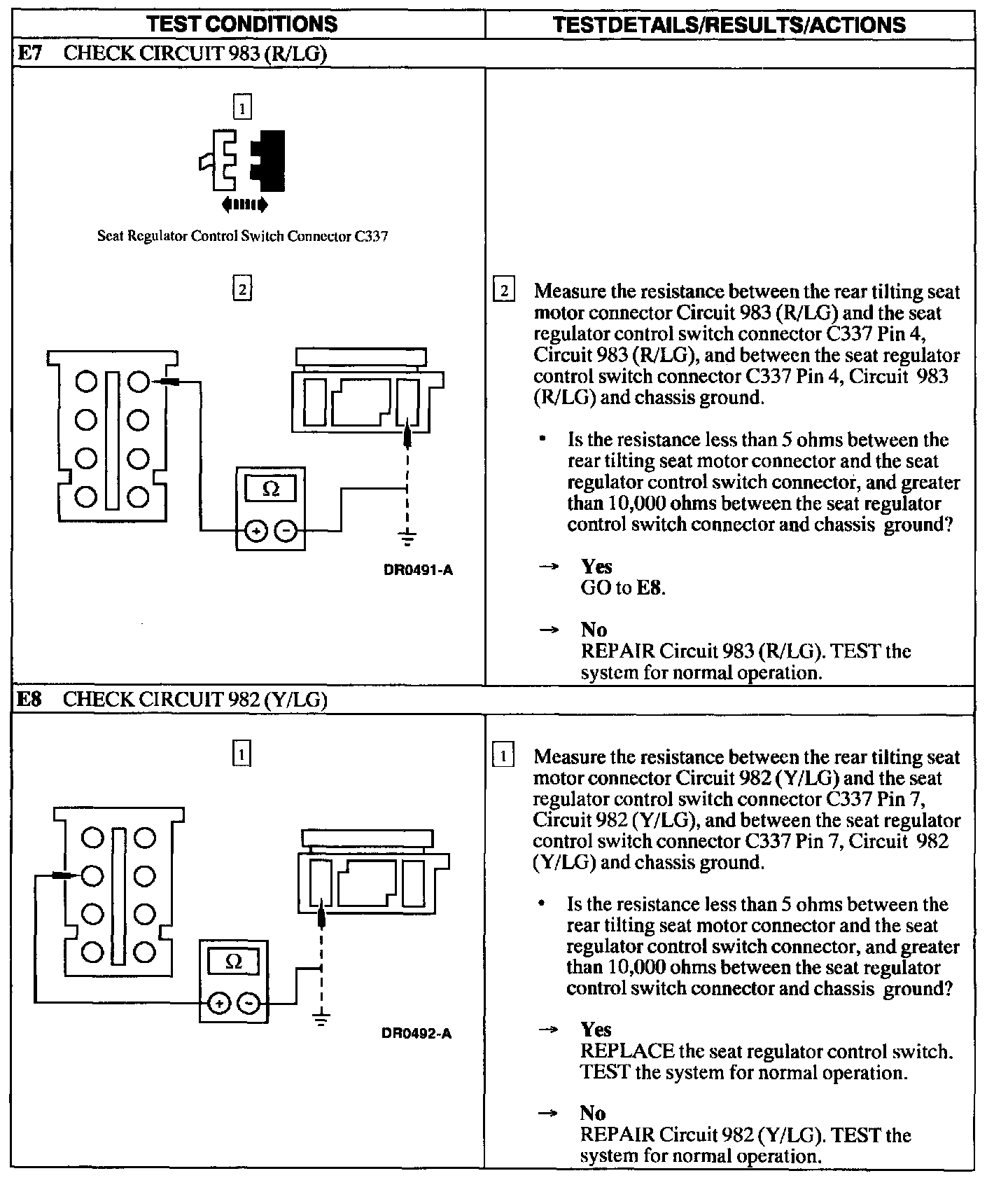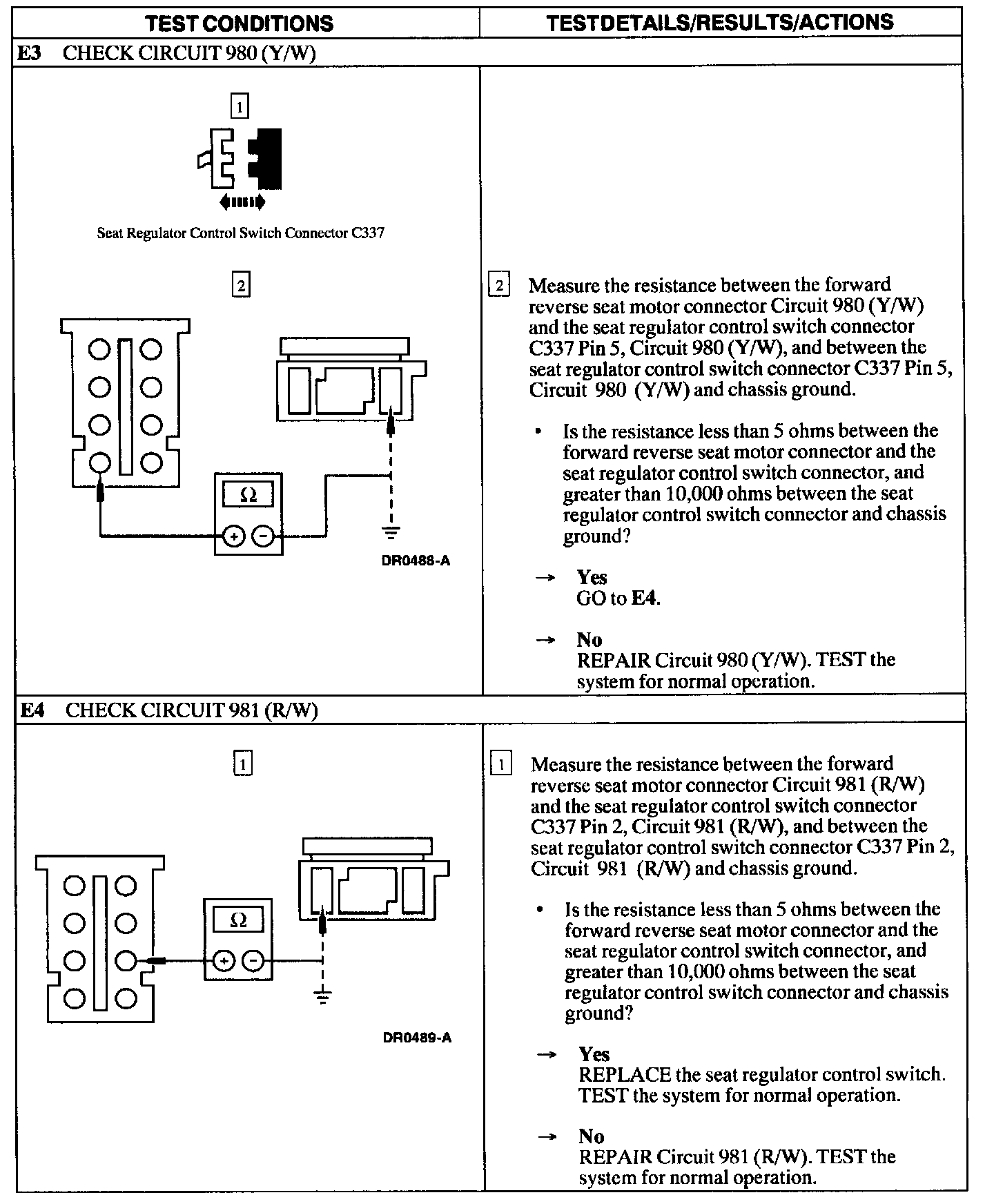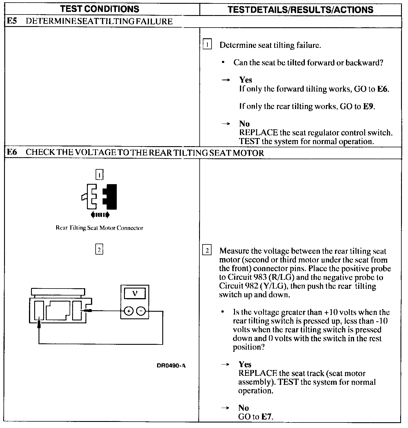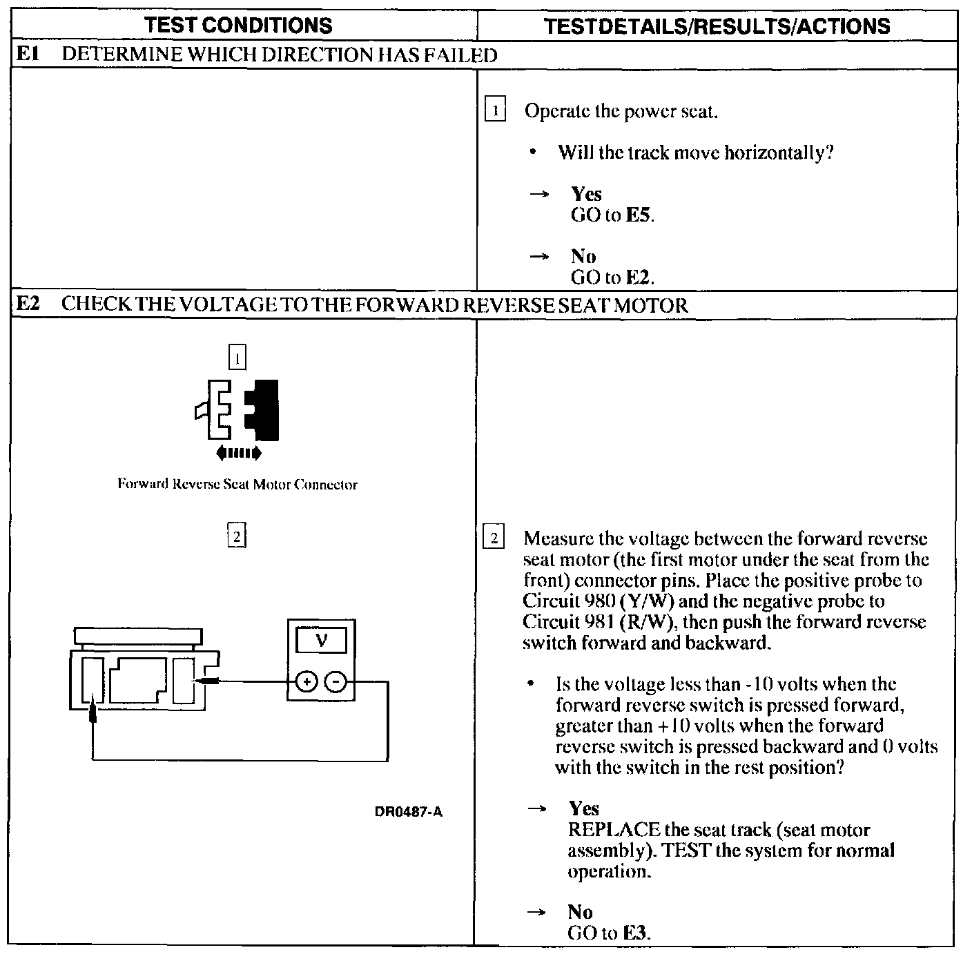Test E: Power Seat Does Not Move Horizontally/Vertically