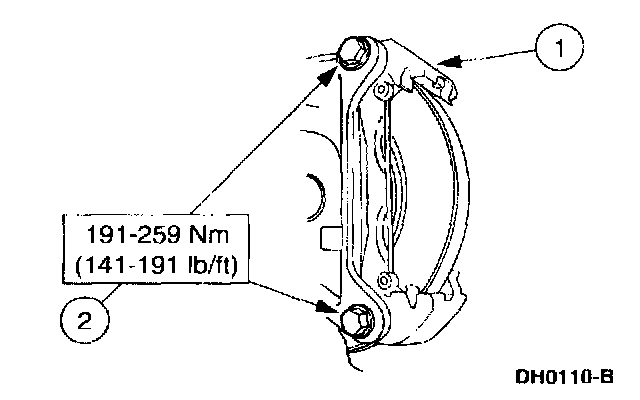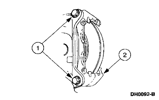 1 Remove the two front disc brake caliper anchor plate bolts.