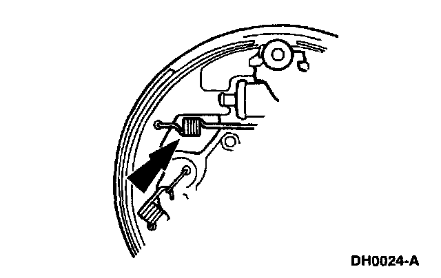 5 Position the adjusting lever return spring and the brake shoe adjusting lever.