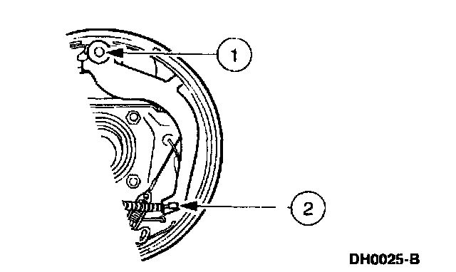 1. Lubricate the brake backing plate friction points. Use Silicone Brake Caliper Grease and Dielectric Compound DA7AZ-193A331-A (Motorcraft WA-10) or an equivalent silicone compound meeting Ford specification ESE-M1CJ71-A.