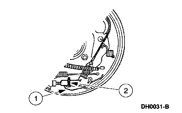 1 Disconnect the brake shoe adjusting lever cable from the brake shoe adjusting lever.
