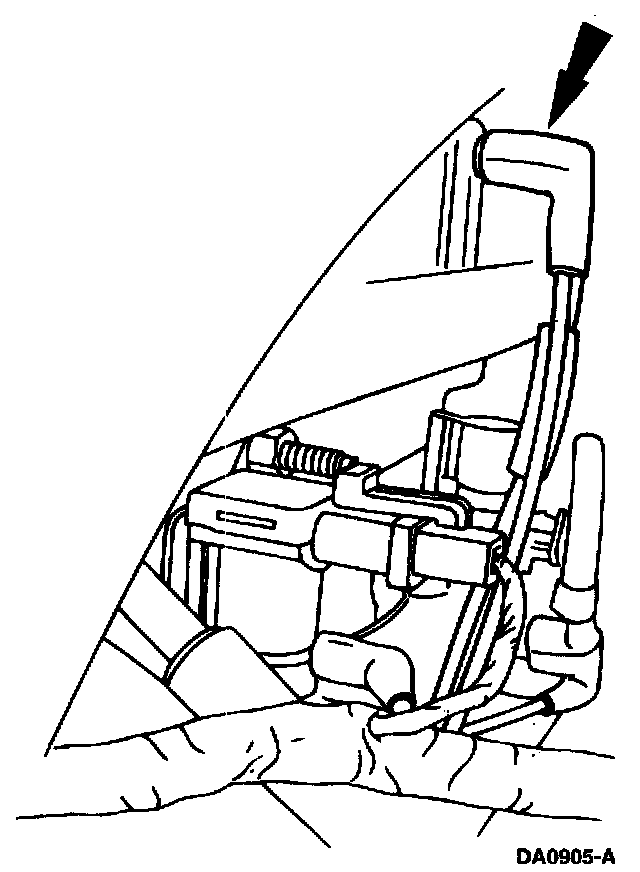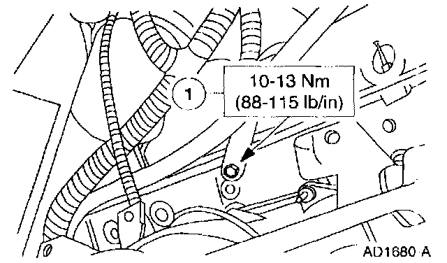 6. Position the transmission oil level indicator bracket and install the nut. Tighten to 13 Nm (10 ft. lbs.).