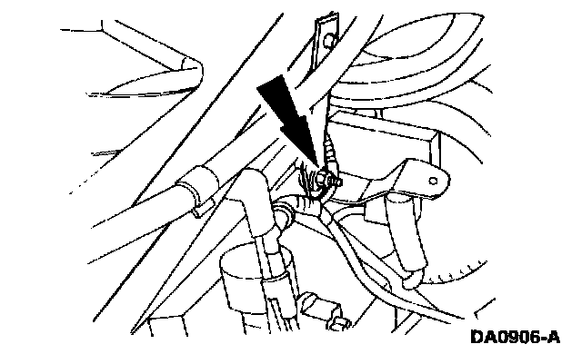 11. Remove the transmission oil level indicator tube retaining nut. Position the tube bracket aside.
