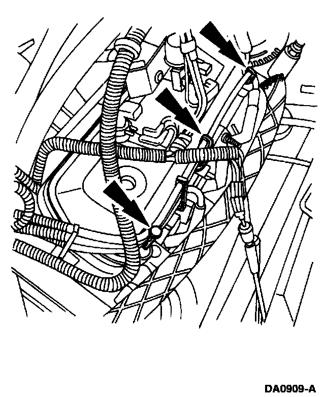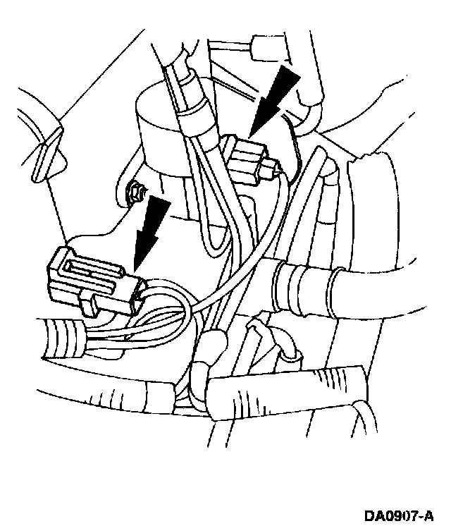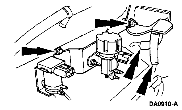 6. Disconnect the Differential Pressure Feedback EGR (DPFE) transducer connector and hoses.
