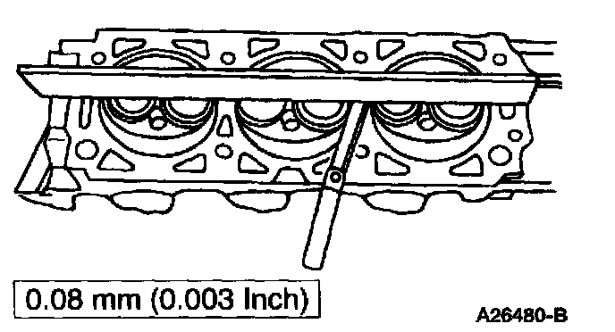 Use a straightedge and a feeler gauge to inspect the cylinder head for flatness. If the cylinder head is distorted, resurface the cylinder head within specification.