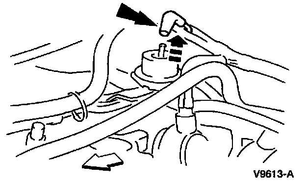 5. Remove the fuel pressure regulator valve vacuum hose.