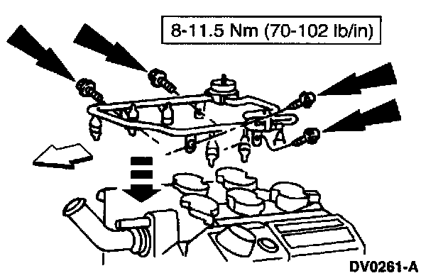 8. Remove the fuel injection supply manifold.
