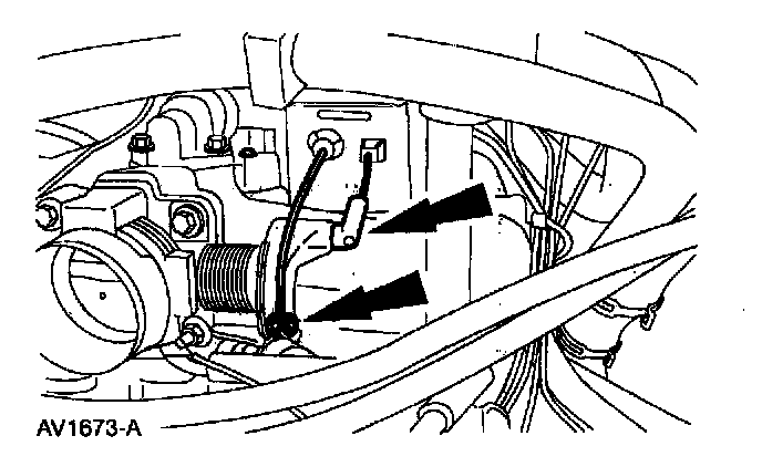 4. Remove the accelerator cable and, if equipped, the speed control actuator cable.