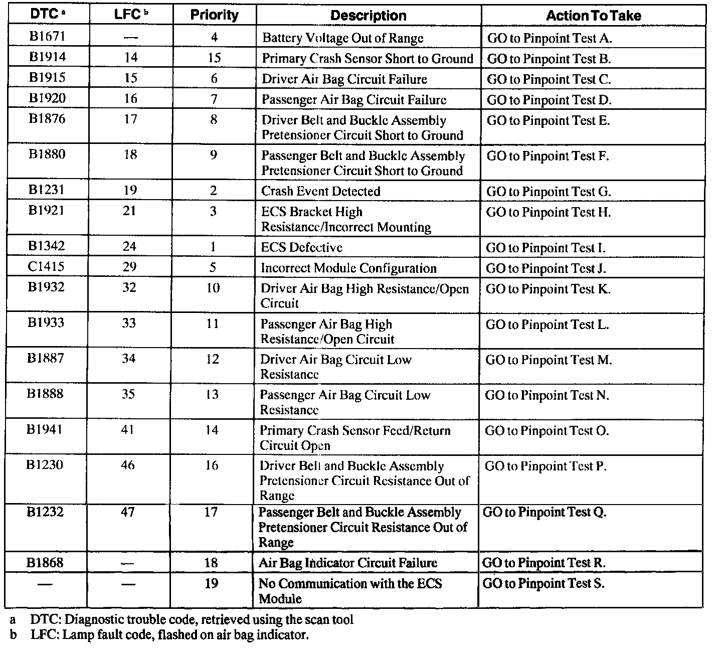 Air Bag Electronic Crash Sensor (ECS) Module Diagnostic Trouble Code (DTC) Priority Table:
