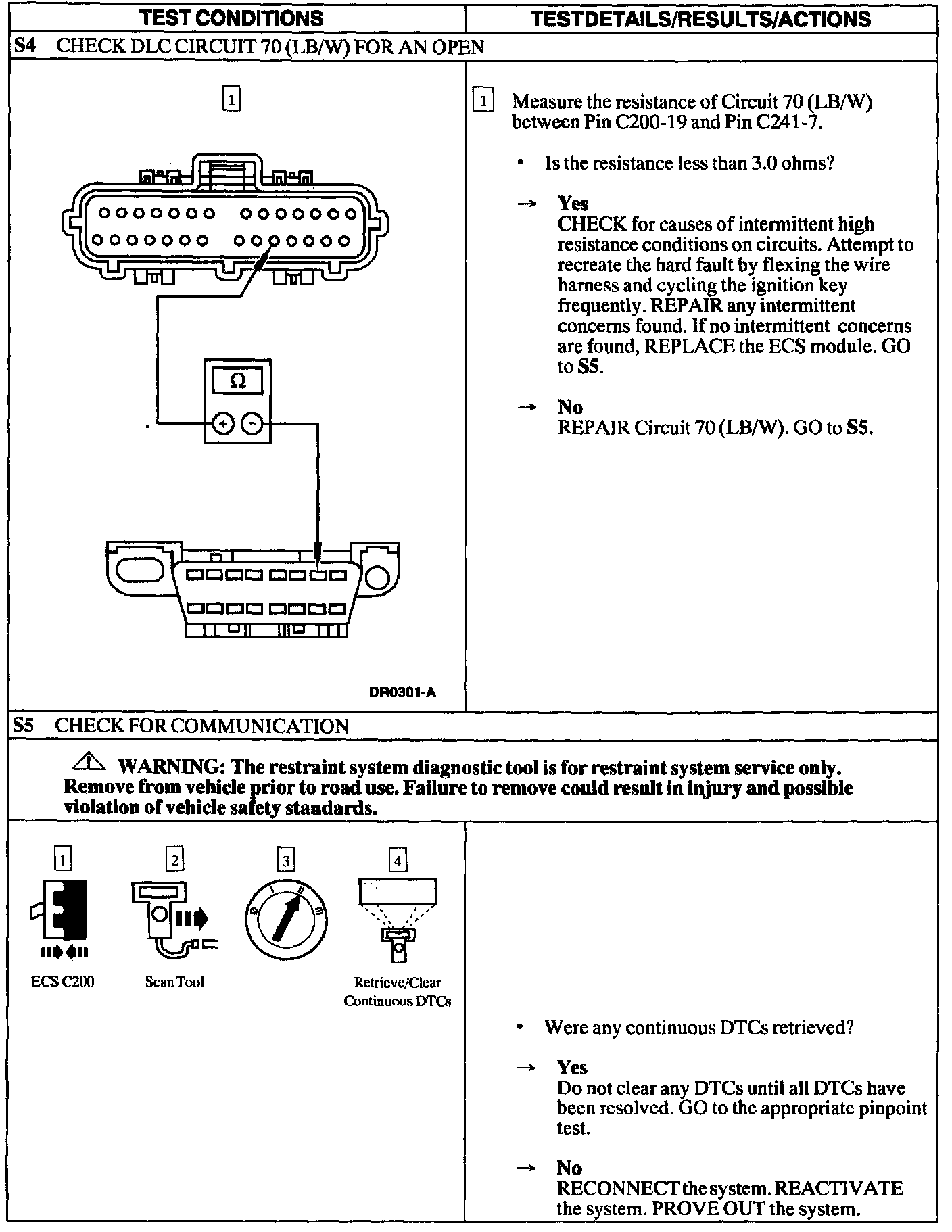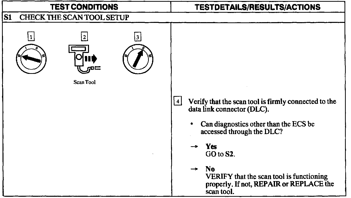 The ECS will communicate the system fault codes through the scan tool using the Data Link Connector (DLC). If the Scan Tool displays "NO COMMUNICATION" when retrieving continuous Diagnostic Trouble Codes (DTCs), use this pinpoint test to troubleshoot the system.