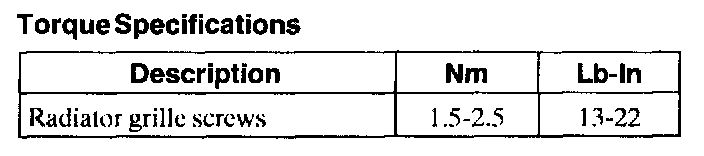 Torque Specifications: