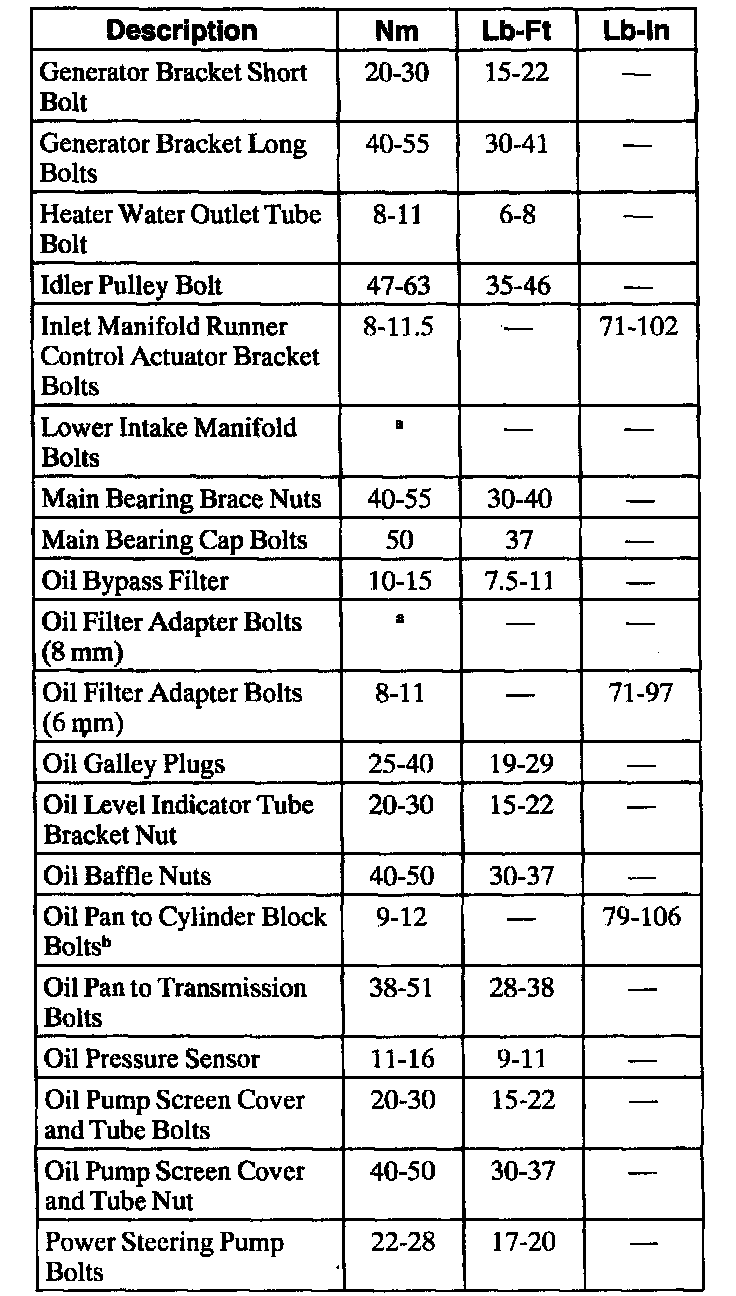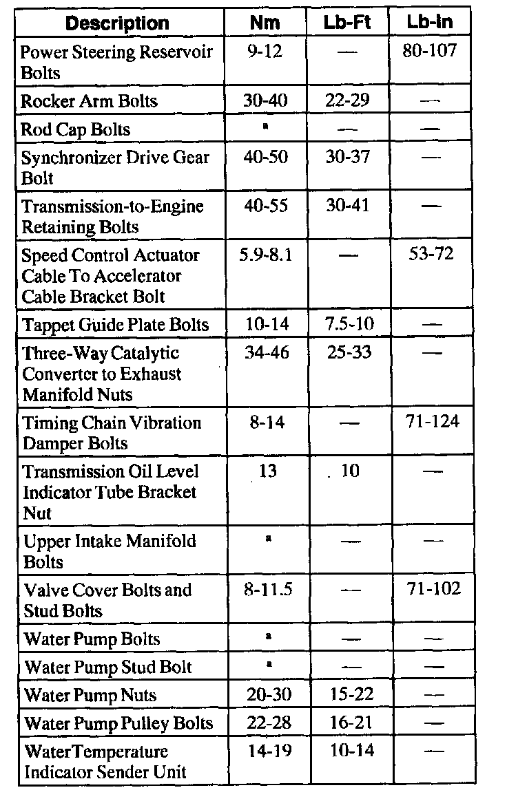 Torque Specifications