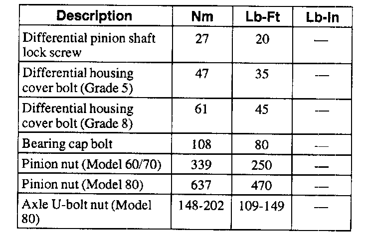 Dana 60, 70 and 80