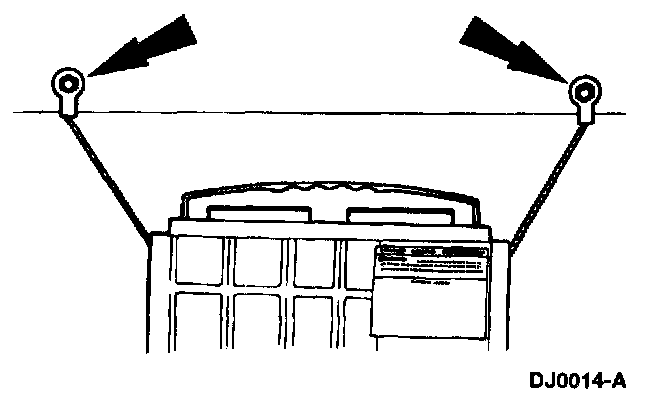 WARNING: WHEN LIFTING A BATTERY, EXCESSIVE PRESSURE ON THE END WALLS COULD CAUSE ACID TO SPEW THROUGH THE VENT CAPS, RESULTING IN PERSONAL INJURY. LIFT WITH A BATTERY CARRIER OR WITH YOUR HANDS ON OPPOSITE CORNERS.
