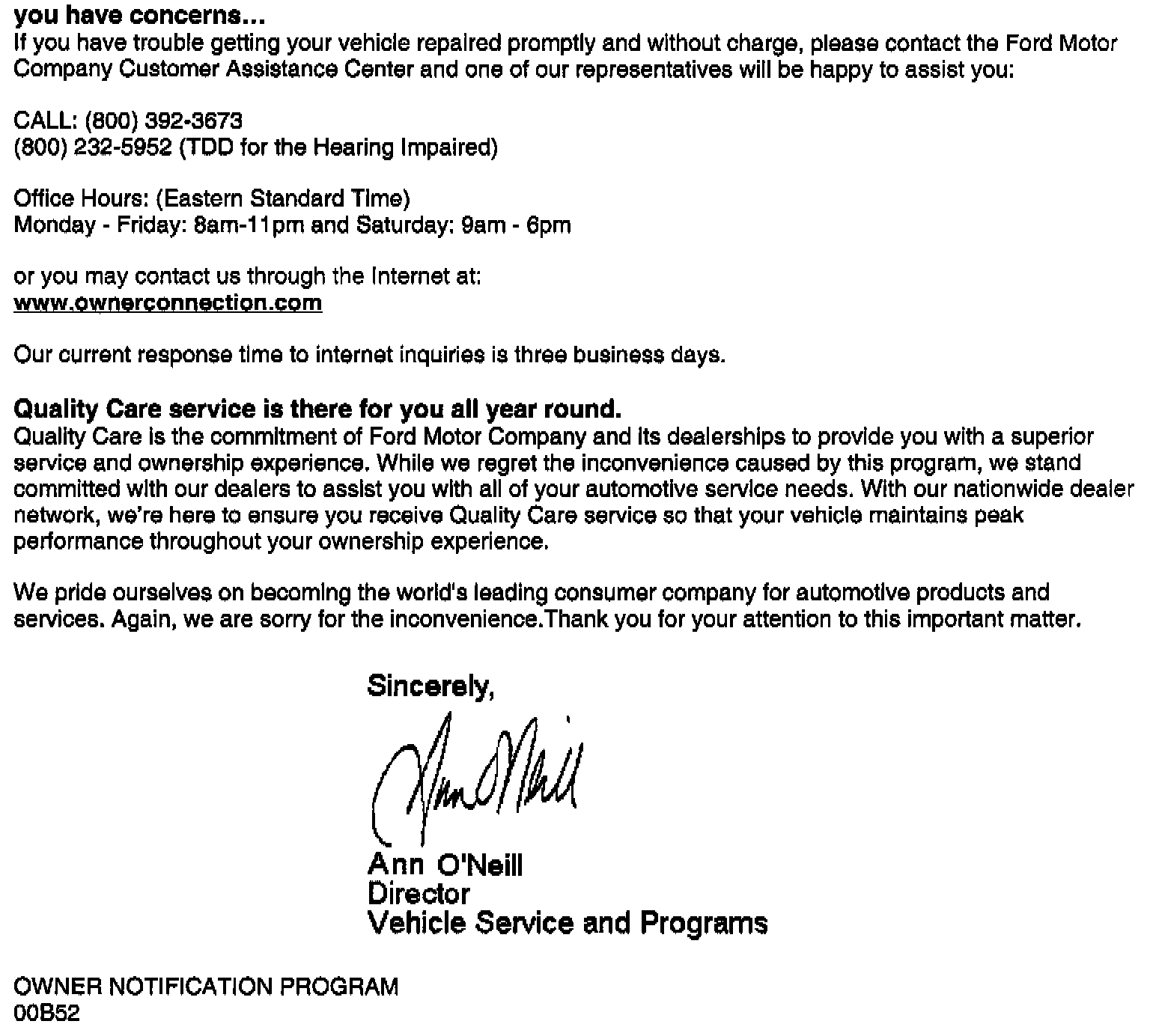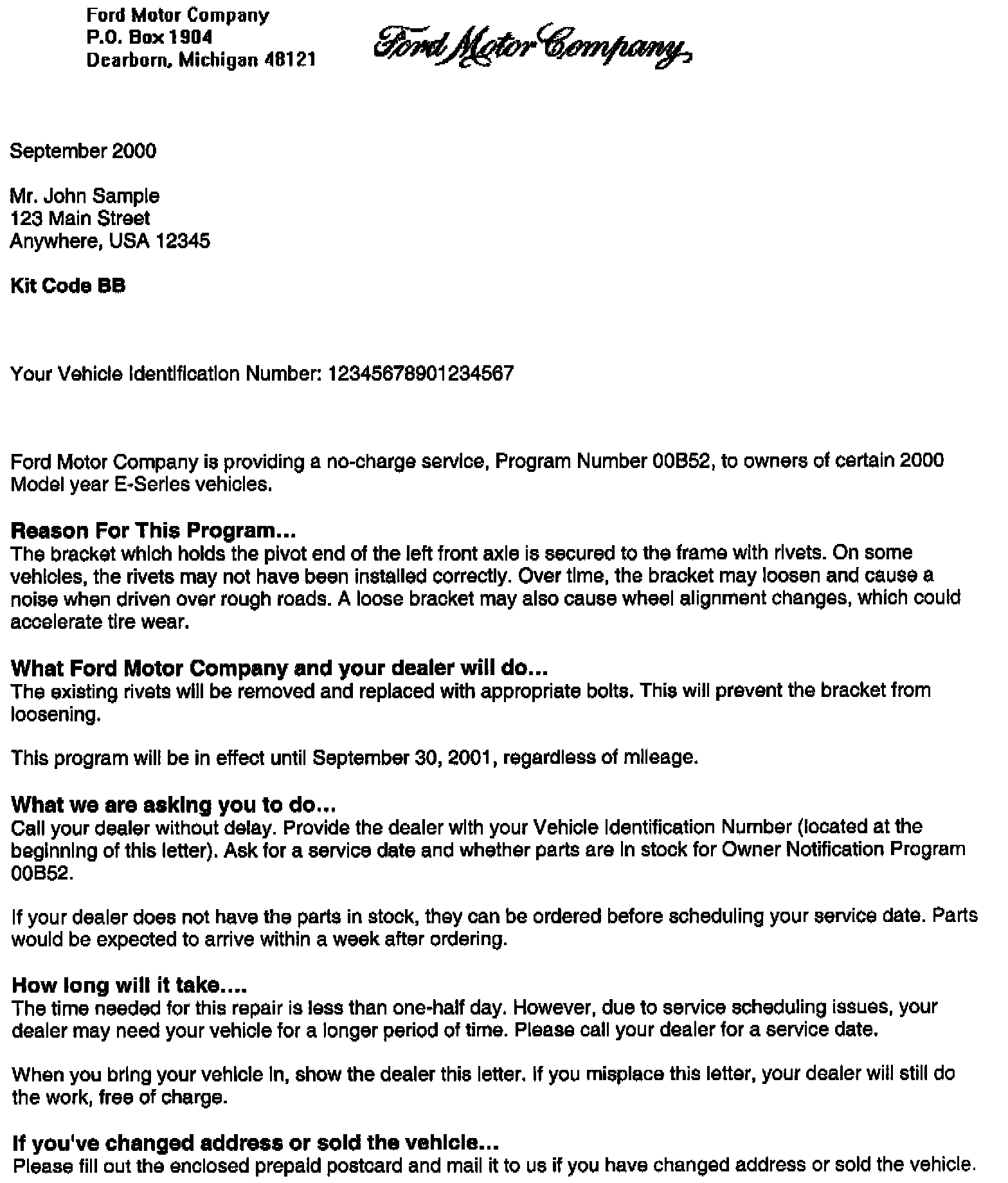 Owner Letter - Kit Code BB