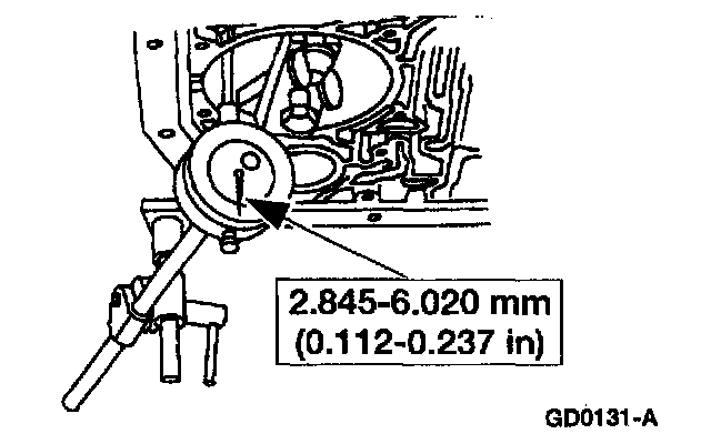5. Verify the amount of piston travel on the dial indicator is within specification.