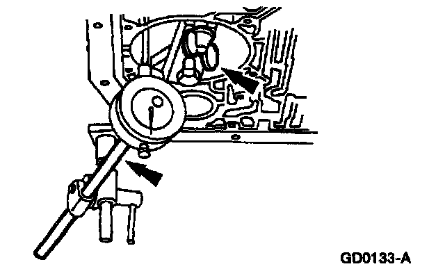 - Position the indicator stem on the flat portion of the reverse servo piston and zero the dial indicator.