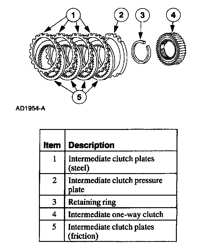 The intermediate clutch works with the intermediate one-way clutch to hold the reverse sun gear stationary in second gear. The intermediate clutch remains applied in third and fourth gears, but does not transmit power.